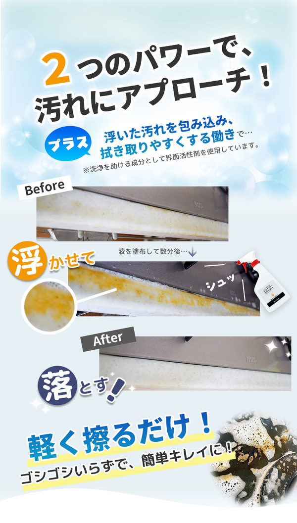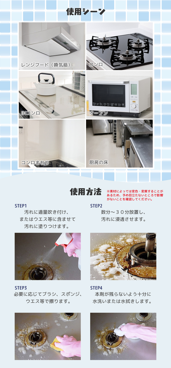 ※素材によっては変色・変質することがあるため、予め目立たないところで影響がないことを確認して下さい。