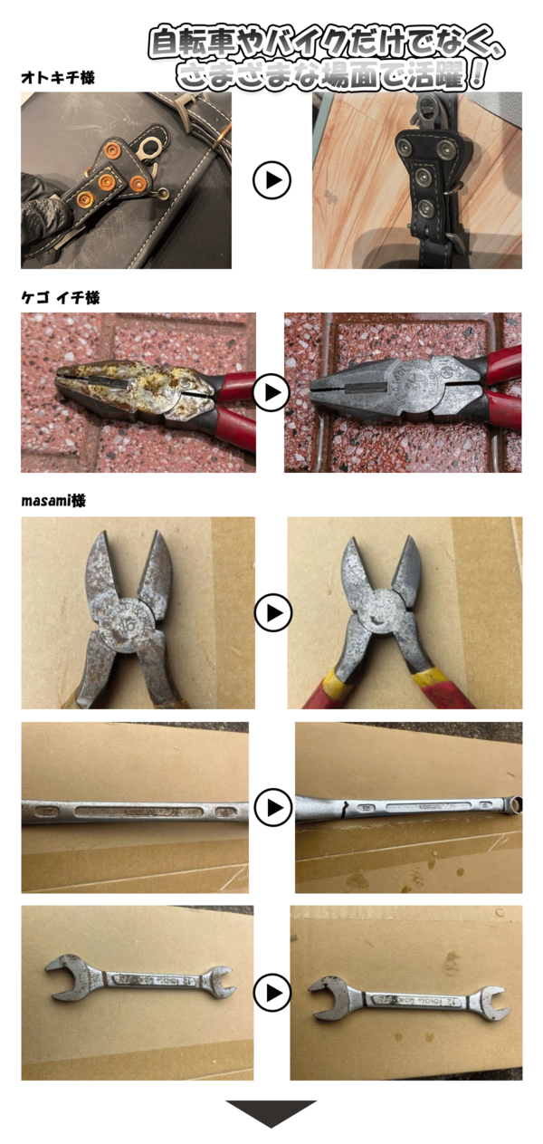 ・ 自転車やバイクに発生した錆をラクに落とせる!